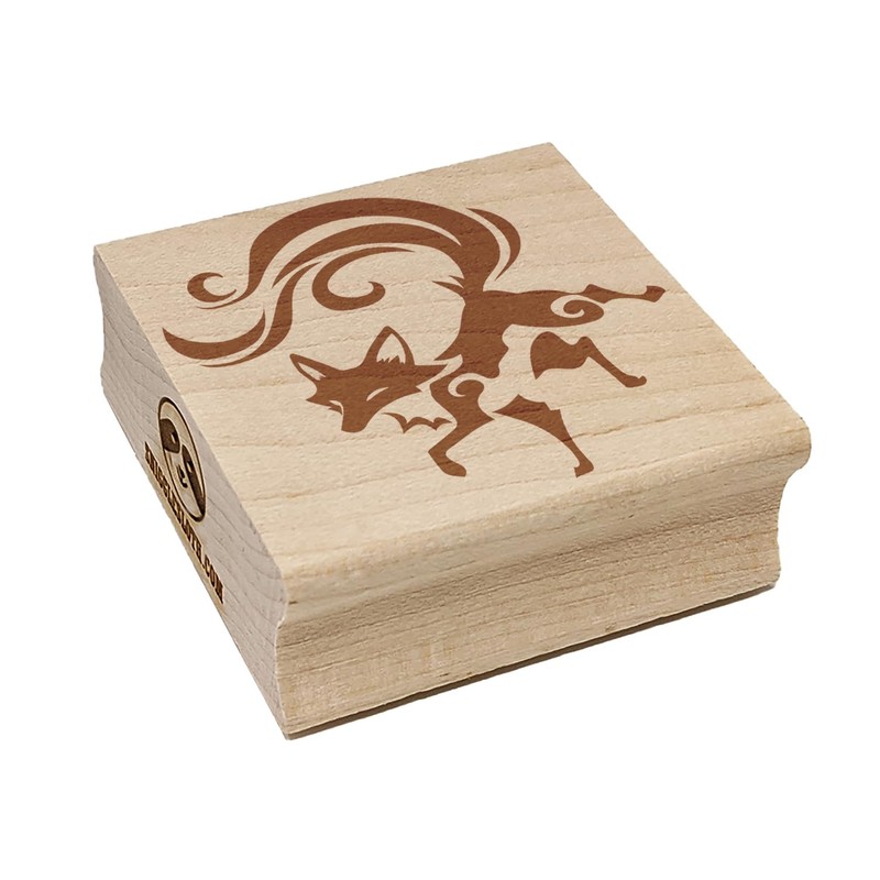 Elegant Fox with Swirling Tail Square Rubber Stamp for Stamping Crafting - 2.75in Large