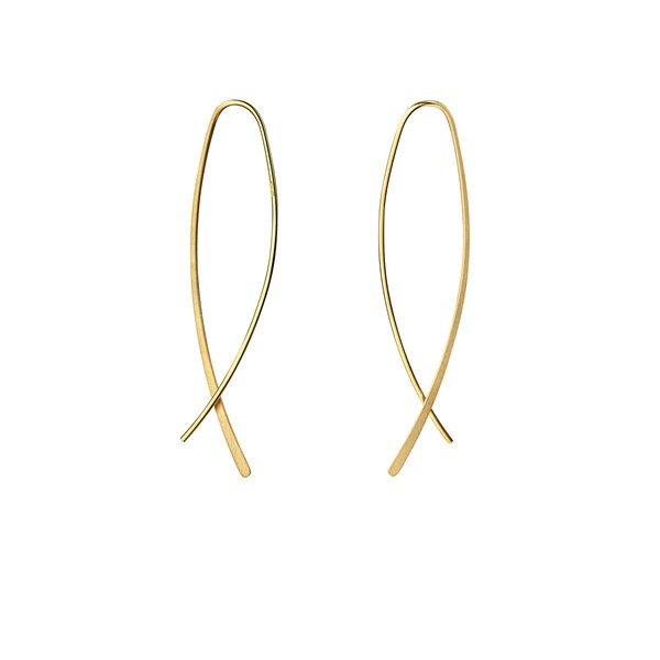 - 1 pair of refined hoop earrings for pulling through in curved shape made of gold-plated 925 silver