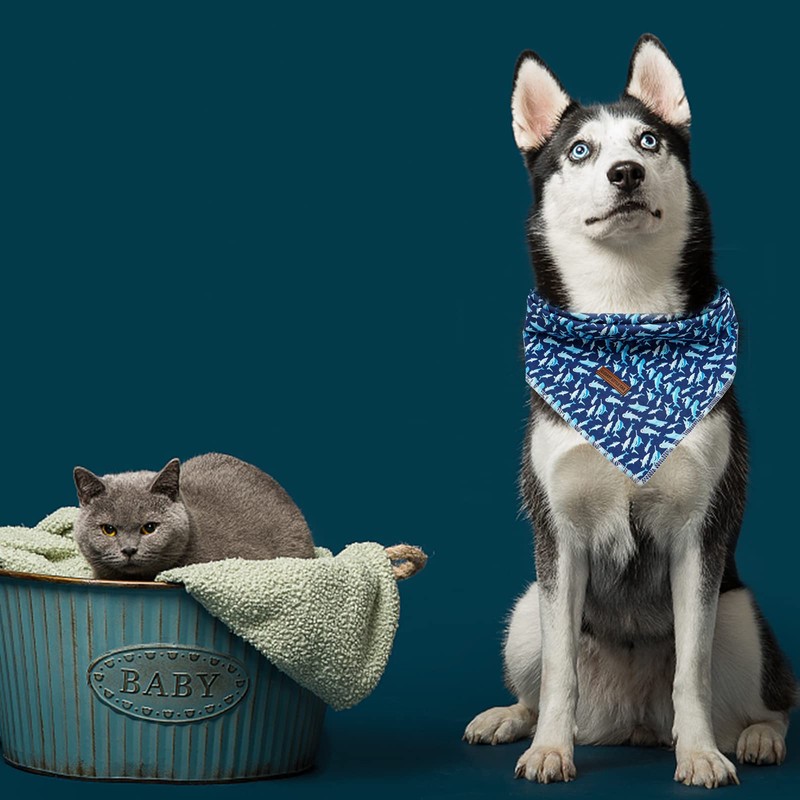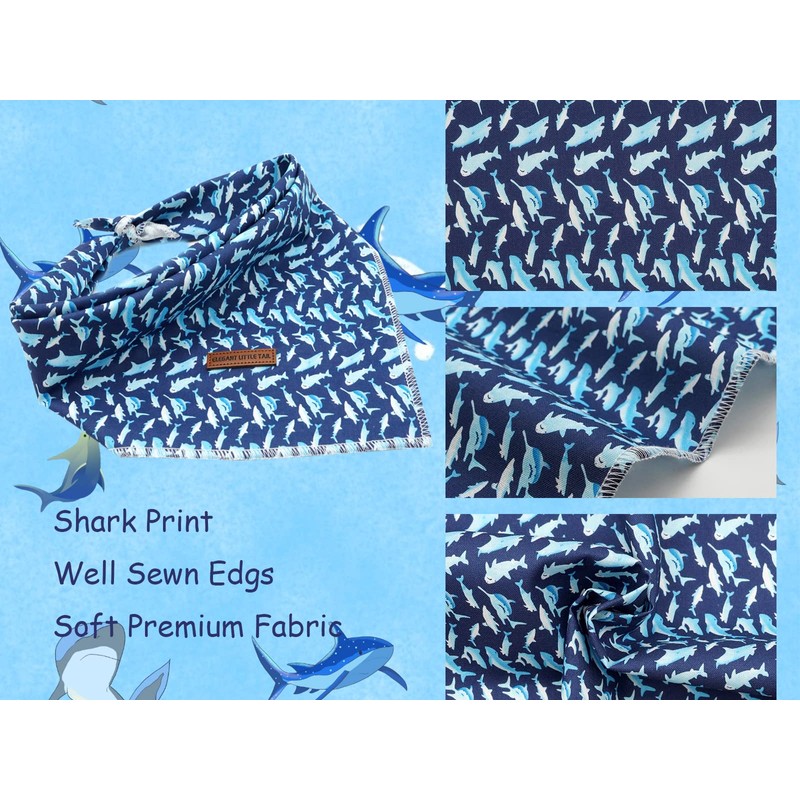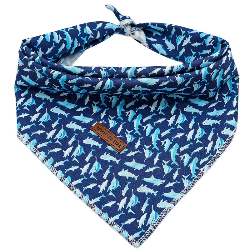 Elegant little tail Dog Bandana, Shark Print Pet Birthday Gift Boy Dog Bibs Scarf, Soft Adjustable Square Dog Kerchief for Large Dogs