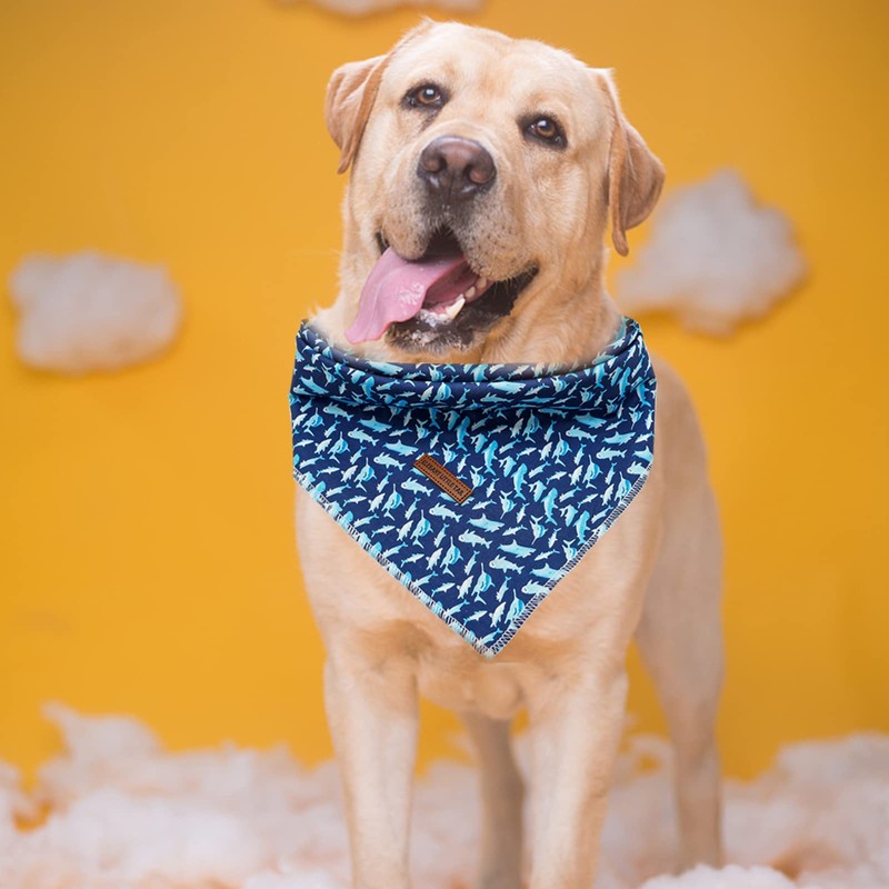 Elegant little tail Dog Bandana, Shark Print Pet Birthday Gift Boy Dog Bibs Scarf, Soft Adjustable Square Dog Kerchief for Small Puppy and Cats