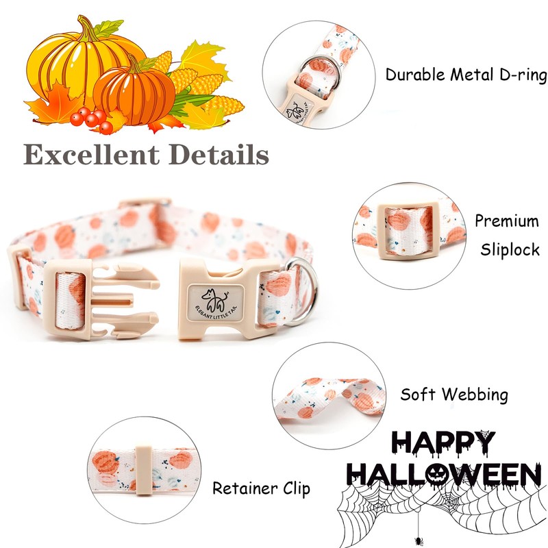 Elegant little tail Dog Collar, Halloween Pet Collar Adjustable Collar for Small Medium Large Dogs Soft Puppy Collars with Quick Release Buckle Fall Dog Collars(M, Pumpkin)
