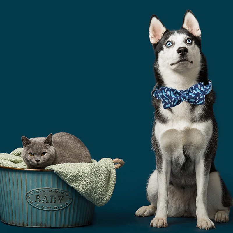 Elegant little tail Dog Collar with Bow, Shark Print Adjustable Dog Collar Cute Bowtie Dog Collar Boy Pet Collar for Small Dogs