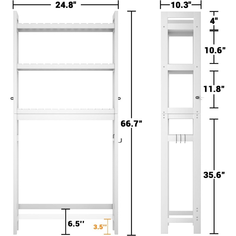 - Perfect Over-The-Toilet Storage: Measuring 24.8” W * 10.3” D * 66.7” H, fits seamlessly above standard toilets, providing easy access to toiletries, towels, and more.