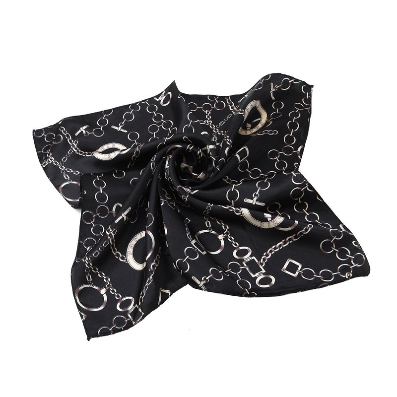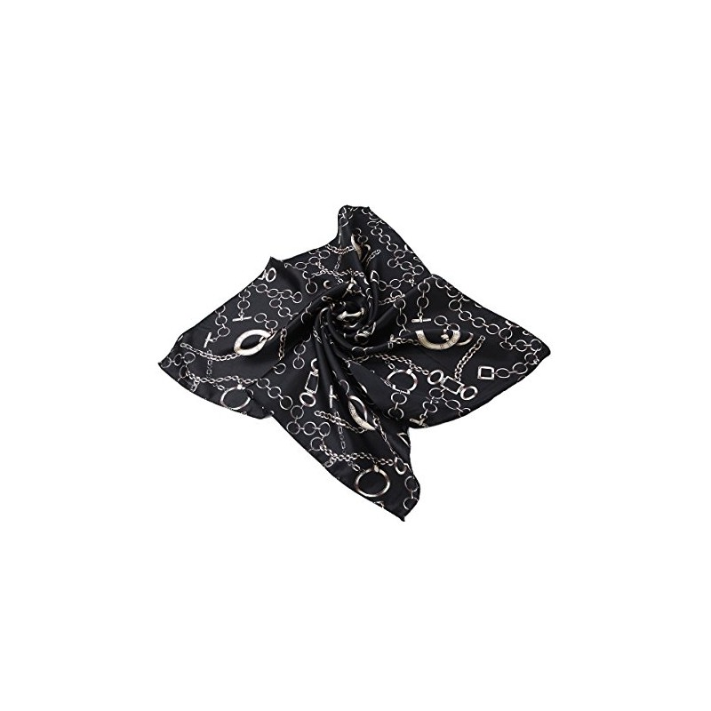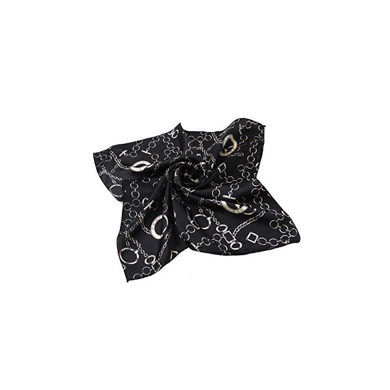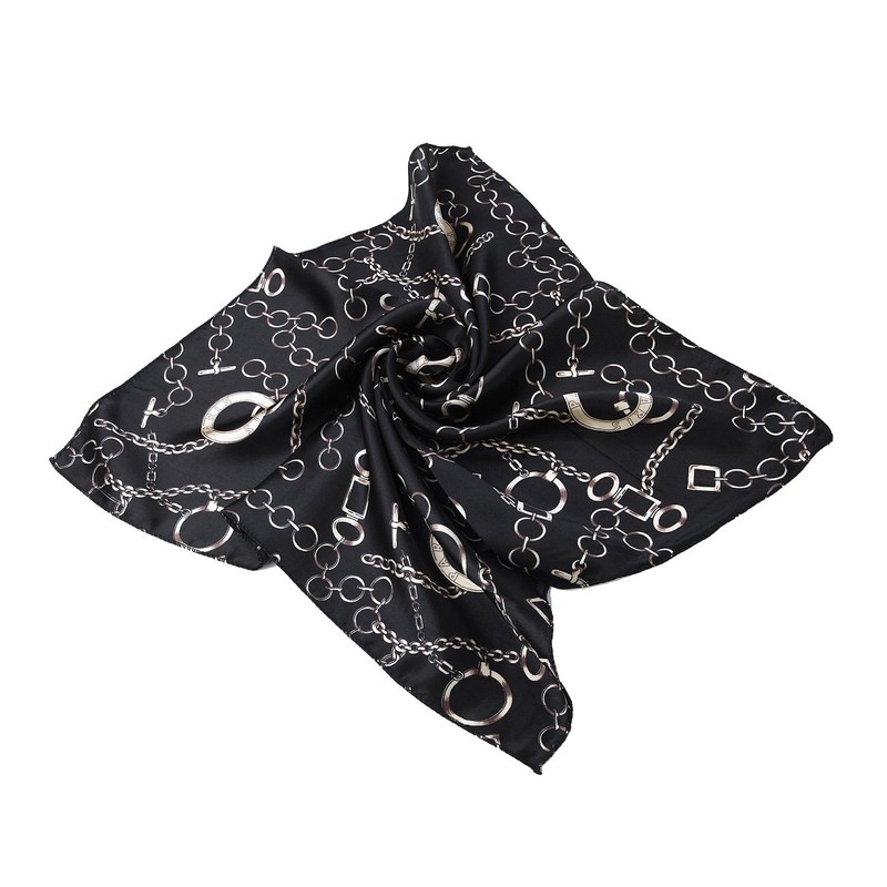 Elegant Silk Feel Plaid with Chains Design Satin Square Scarf, Black Chains