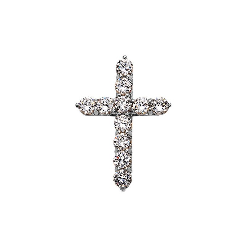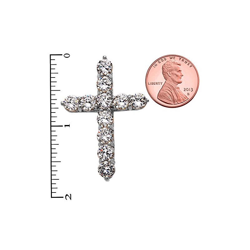 Elegant Sterling Silver 12 Carat Round Cubic Zirconia Cross Pendant (Extra Large)