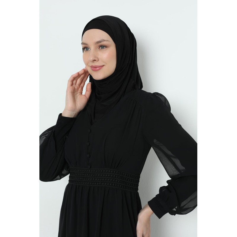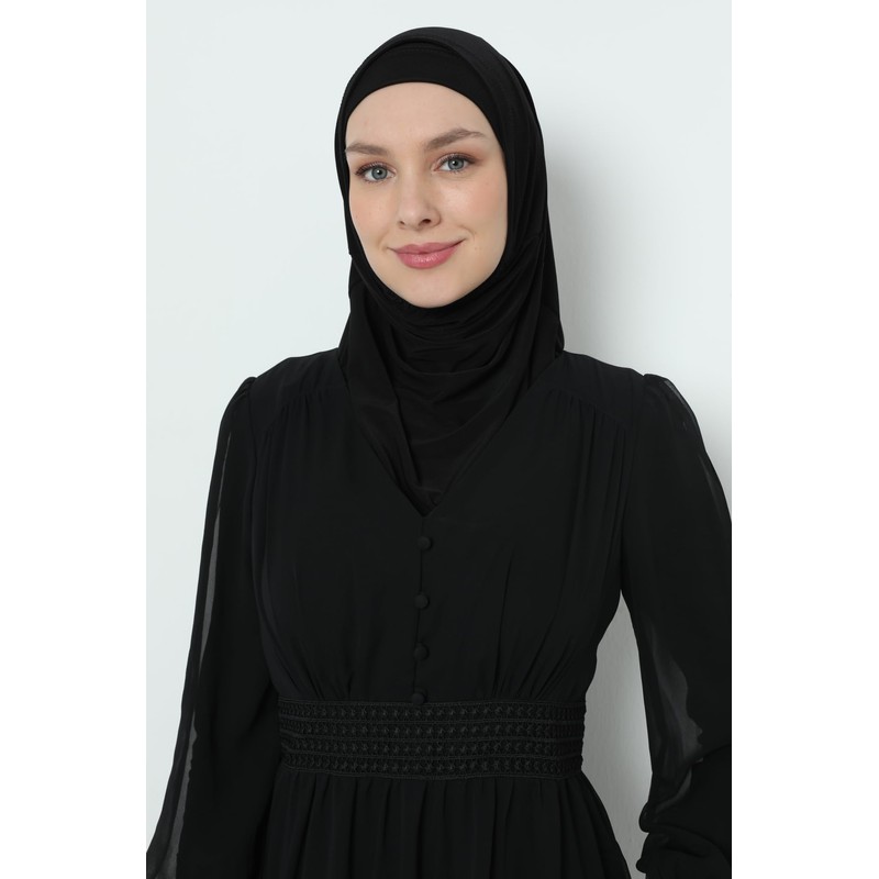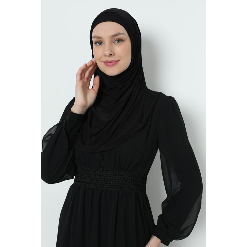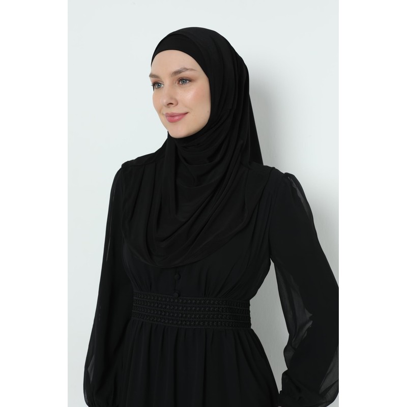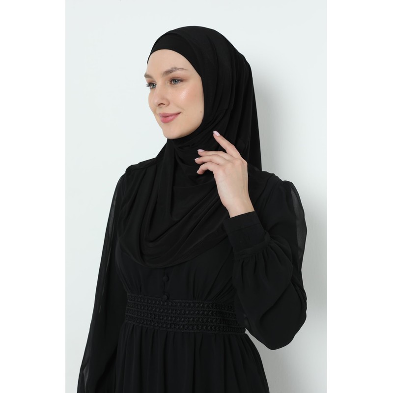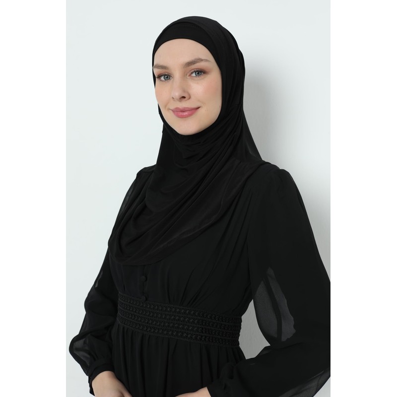 Elegant Stretchable Hijab for Women, Instant and Durable, Tailored for Muslim Women Consists of 2pieces (Black)