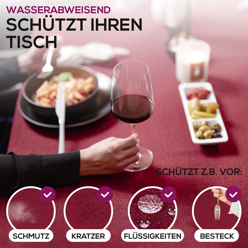 - Water-repellent and robust: thanks to its water-repellent coating, the tablecloth reliably protects against stains and dirt.