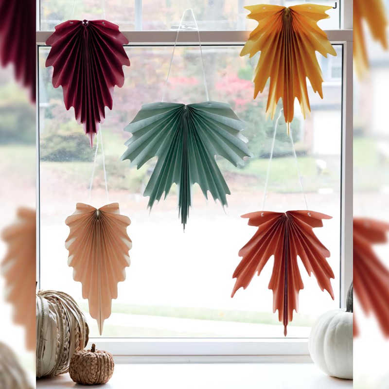 Elegant Thanksgiving Paper Fan Leaf Decorations - 5 Count | Decorative Party Supplies for Festive Celebrations