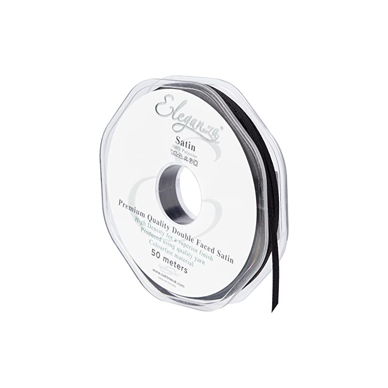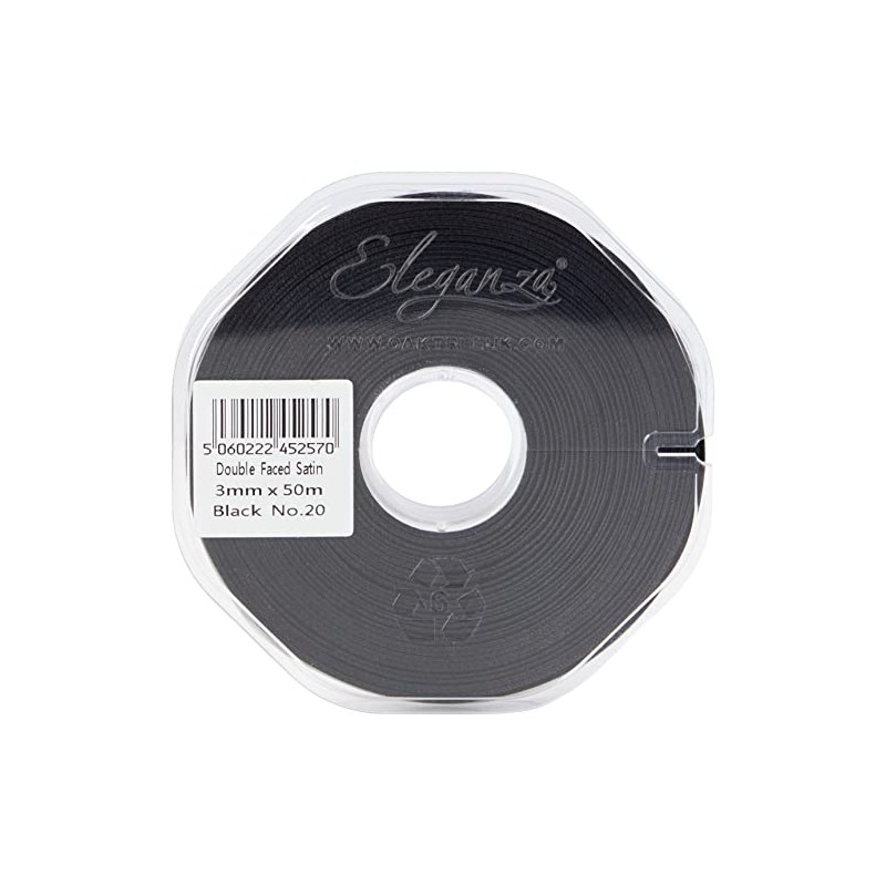 ELEGANZA Double Faced Satin 3mm x 50m Black No.20, 3 mm x 5 0m
