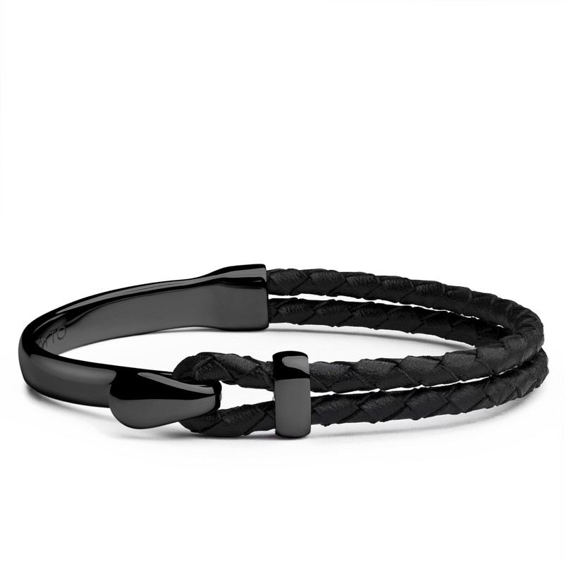 - Elevated Craftsmanship: The Signature Black Bracelet combines full-grain black leather with polished black-plated stainless steel, creating a sleek and durable design. The minimalist hook closure enhances the modern look of this bold accessory.