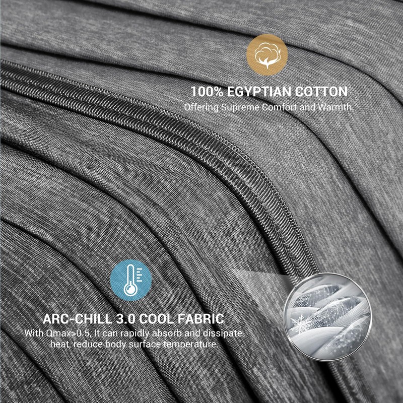 - DOUBLE-SIDED: One side of the cool blanket features the upgraded Arc-cill 3.0 cool fabric, which has the ability to rapidly absorb and dissipate heat (12X faster than cotton), providing an immediate cooling sensation upon contact. The other side is made of 100% natural Egyptian cotton, offering exceptional softness and excellent breathability. The two-sided design ensures year-round comfort.