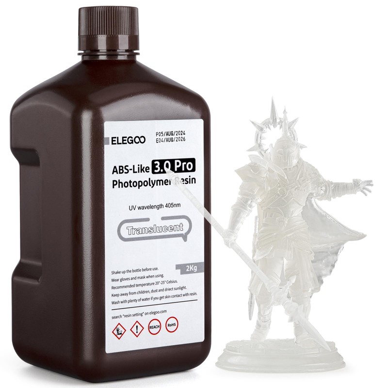 ELEGOO ABS-Like Resin 3.0 Pro, Higher Scratch-Resistance 3D Printing Photopolymer Resin, 405nm UV Resin for MSLA/DLP/LCD Printers Fast Curing High Precision Non-Brittle, Translucent 2000g