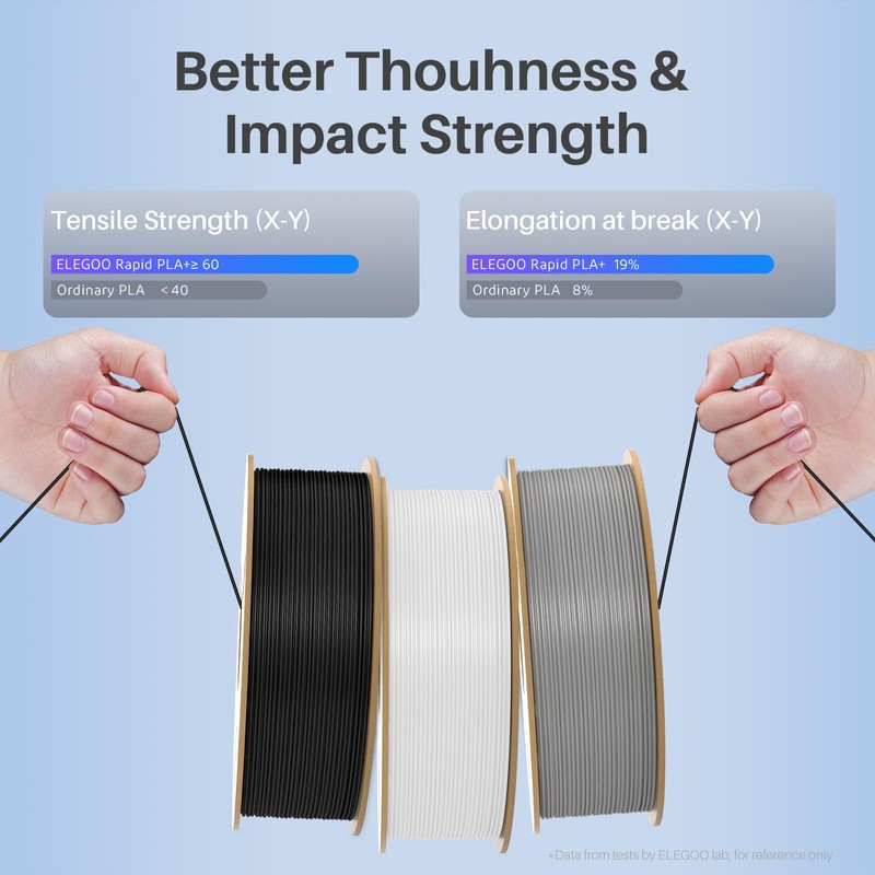 - ENHANCED STRENGTH & TOUGHNESS: ELEGOO RAPID PLA plus filament features high flexural modulus and elongation at break, which makes it resistant to brittleness and cracking, bringing excellent results for printing functional parts