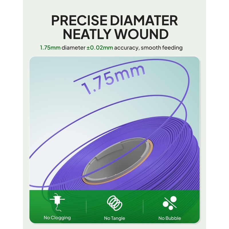 - PRECISION DIAMETER, LESS TANGLE - 1.75mm diameter with ±0.02mm accuracy, outstanding tolerance and consistency, neatly wound and less tangle, ensures smooth feeding, minimizing clogging and improving print stability for flawless results