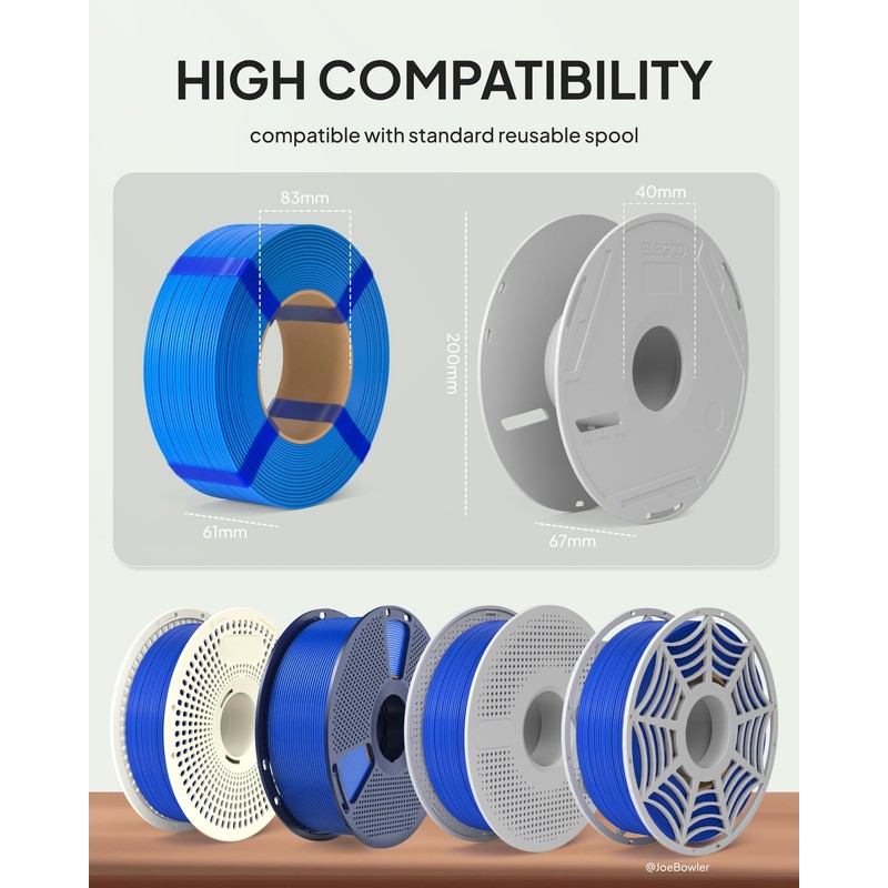 - SUPERIOR COMPATIBILITY - ELEGOO PLA Basic filaments are wound onto a cardboard core, fully compatible with reusable spool of ELEGOO, Bambu Lab, eSun and more. You can also print your own spool for seamless use with most 3D printers