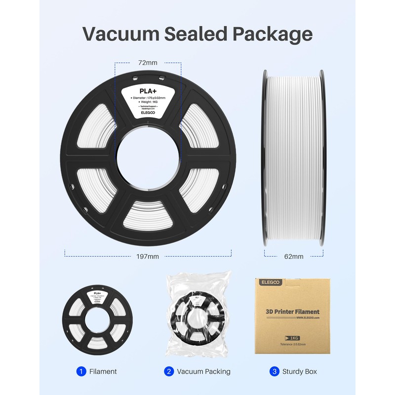 - NO CLOGGING & NO BUBBLE: ELEGOO PLA Plus Filament is complete dried before packaging and vacuum sealed well to protect the filament from moisture, no clogging and bubbling problems
