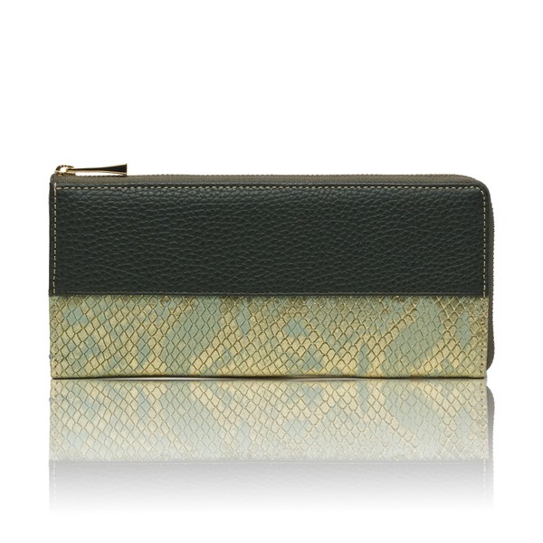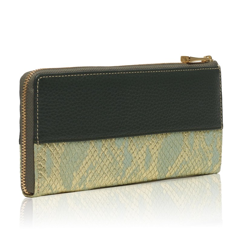 Elegrow 72771 REA Wallet Long Wallet, Women's, Compact, Genuine Leather, Italian Leather, Lightweight, Small, Thin, Python Pattern, Cowhide Leather, Glossy, Gold, green