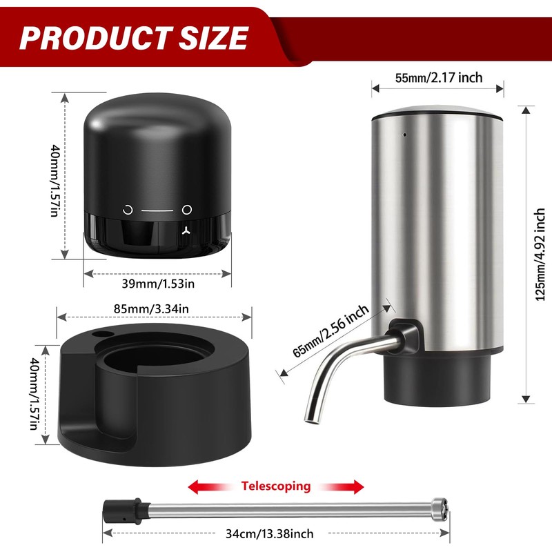 - Aufbewahrungssockel: Dieser Elektrischer Wein Dekanter verfügt über einen exklusiven Aufbewahrungssockel, der für Ordnung in der Küche oder im Barbereich sorgt und die Verwendung einfacher und schneller macht. Da der Elektrischer Weinspender kompakt und leicht ist, können Sie Wein jederzeit und überall genießen, egal ob zu Hause, bei einer Party im Freien oder auf Reisen.