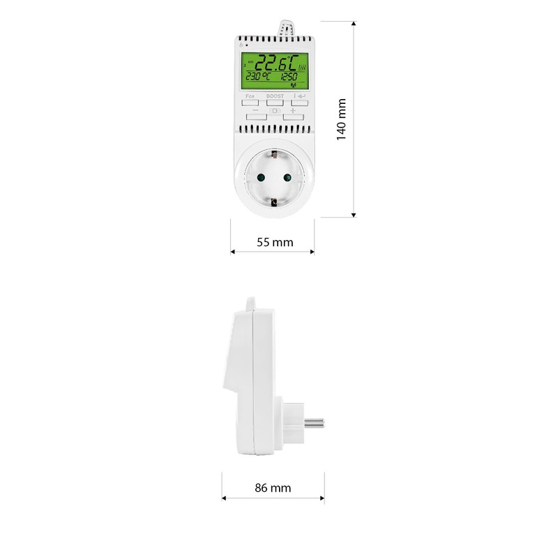Elektrobock Plug Thermostat TS30 for Electric Heaters RAL 9010 Pure White Normal