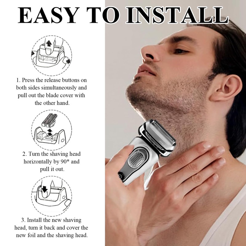 Der einzigartige vorteil von kompatibel mit braun scherkopf series 9 ist die einfache austauschbarkeit. Sie können es einfach mit nur einem klick austauschen, ohne dass werkzeuge erforderlich sind.