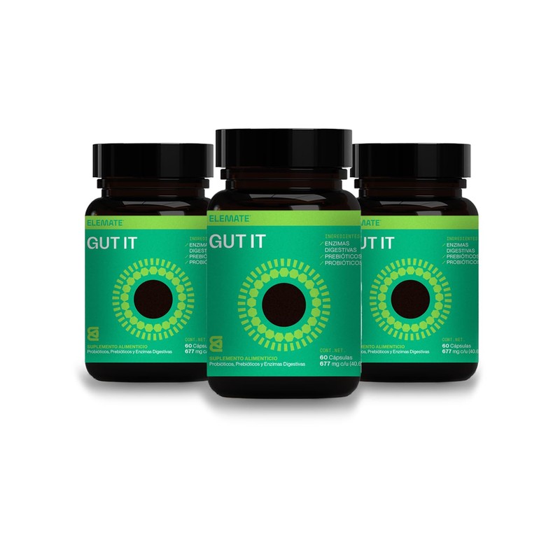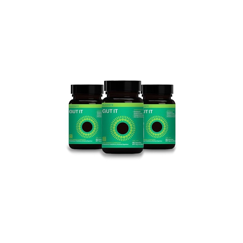 ELEMATE | Kit 3 Gut It- Suplemento 100% Natural | A base de Probióticos, Prebióticos, Enzimas Digestivas, Citrato de Magnesio | 60 Cápsulas Veganas | Apoyo Digestivo
