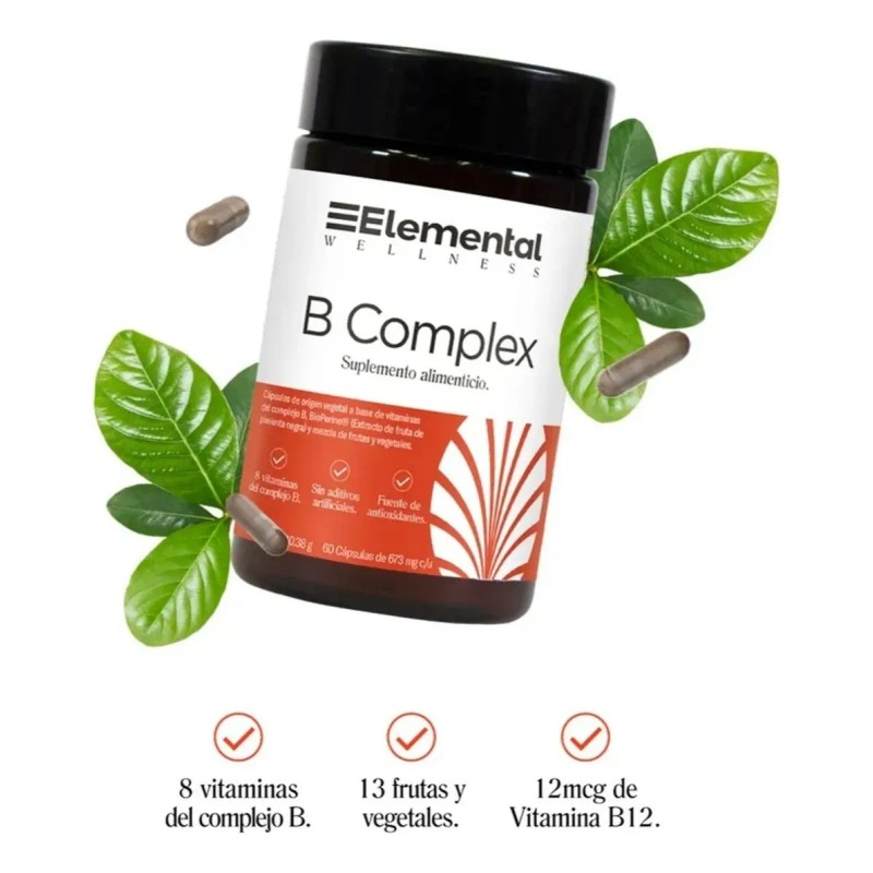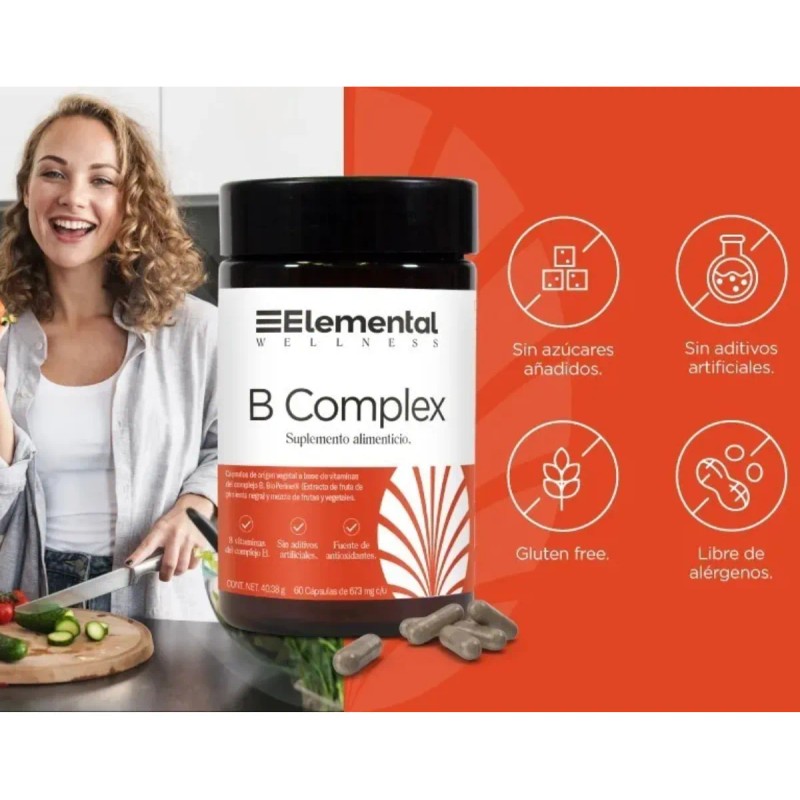 Elemental B Complex Complejo B 60 Cápsulas De 673mg Vitaminas B1 13 Frutas y Verduras 40.38g Sin Sabor