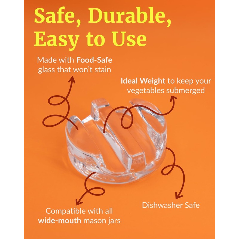 Elementi Elementi Fermentation Weight Set of 2 - Easy to Use Glass Fermenting Weights, Perfect Fit for Wide Mouth Mason Jars, Highly Durable Soda-Lime Glass Fermentation Kit for Sauerkraut, Kimchi & More