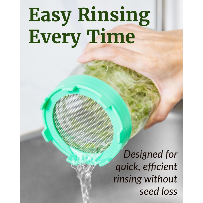 - EASY TO USE: Just soak sprout seeds in a mason jar overnight, then put the lid on the jar and invert to drain the water. Rinse a few more times and drain, leaving the jar upside down. Rinse and drain twice a day, making sure to shake gently to distribute the water evenly. After 3-7 days, your sprouts should have reached their desired size. Rinse and store in the fridge. The fine mesh mason jar lid is designed to keep even the smallest seeds inside the jar, while allowing proper air circulation