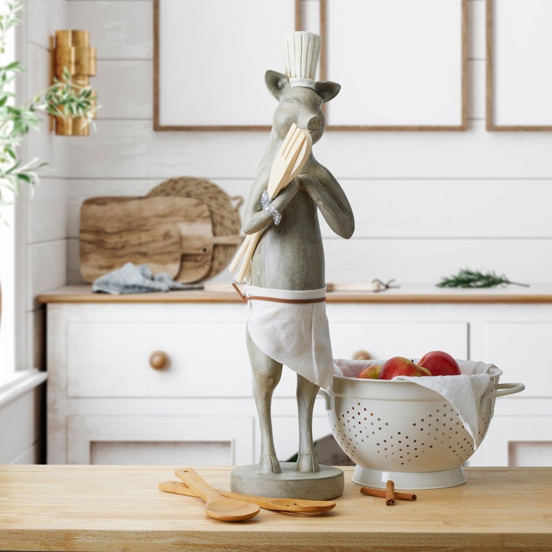 - CHARMING: unique pig figurine wearing an apron and chefs hat adds a wholesome look to your decor