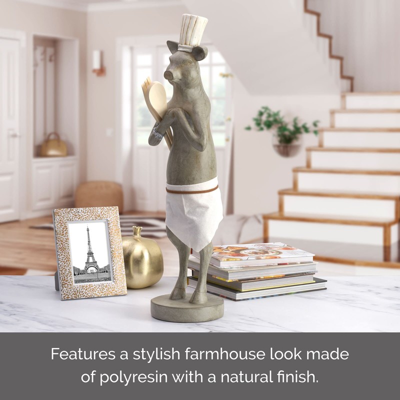 Elements Resin Chef Pig Figurine, 5.91x7.87x25 Inch, Gray
