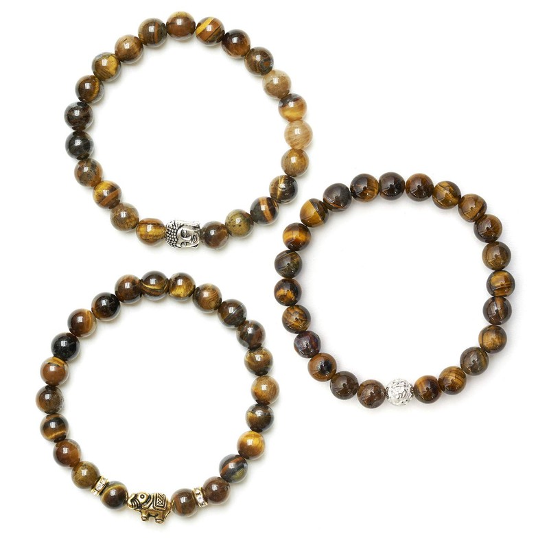 - Tiger eye basics – also look at our Buddha and 925 silver pearl tiger's eye bracelets (picture 3). Patina look – the colour of the elephant bracelet changes from gold to a copper antique look after a time.
