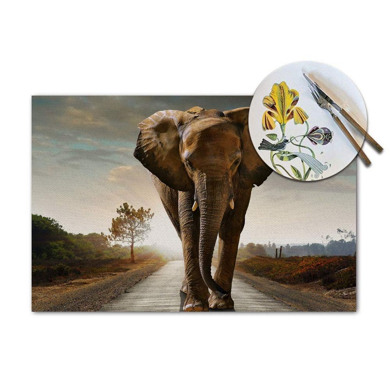 Elephant Placemats Set of 4, Walking Elephant African Animals Placemats Heat Resistant for Dining Table Non-Slip 18x12 Inches