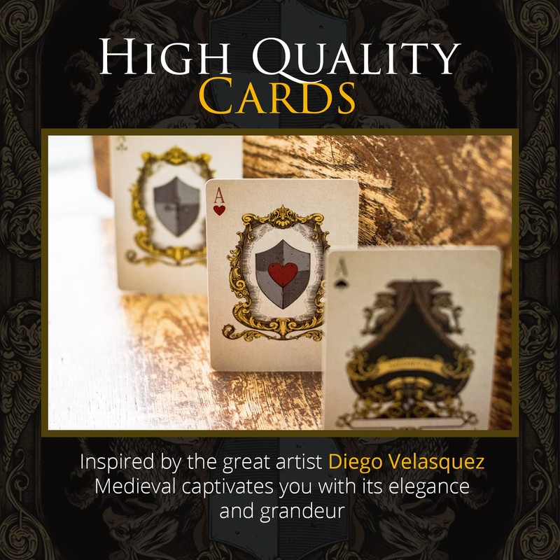 - It seems to have an ace in your pocket. Get ready to get admirations and admirations on a high quality medieval card. Elegant handwriting design with high quality precision print makes it a game changer for poker nights. Medieval cards not only look great, but also feel amazing and easy to handle. Perfect for transporting, magicians, and little craft experts