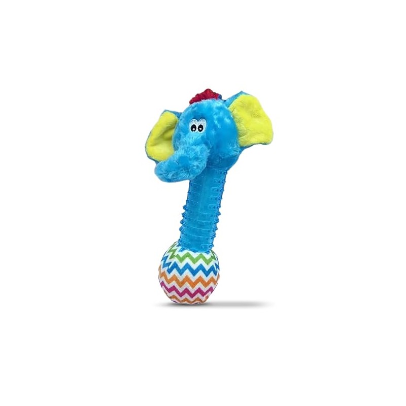 - SIZE AND FEATURES: Compact toy with plush elephant head, yellow ears, and multicolored ball base, ideal for small to medium-sized dogs