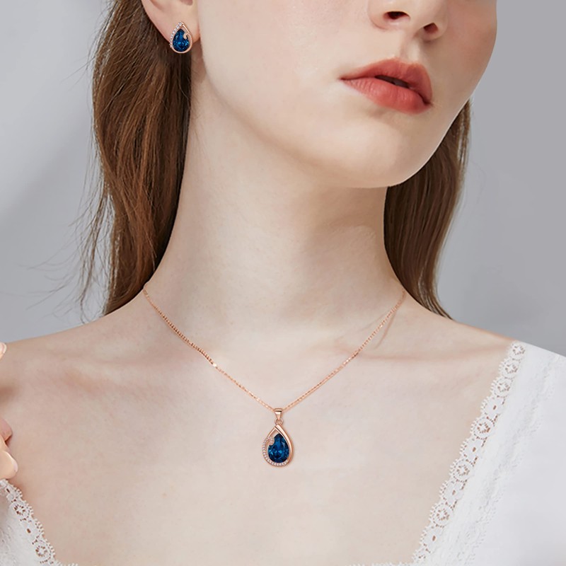 - 【Size】: CZ Color: Clear, Blue Rose Gold-Tone, Necklace Length: 18inches-20inches, Pendant Size: 1.1inches by 0.6inches, Stud Earrings Size: 0.6nche by 0.4inch, Total Weight: 8.1g.