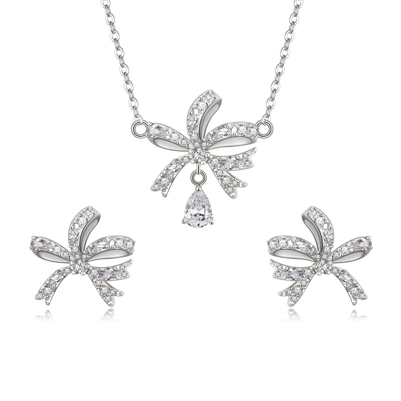 EleQueen Silver Plated Sparkle Cubic Zirconia knot Teardrop Pendant Necklace Stud Earrings Jewelry Set Gift for Women Girls, Valentine's Day/Mother's Day/Christmas Jewelry Gift for Girlfriend/Mom