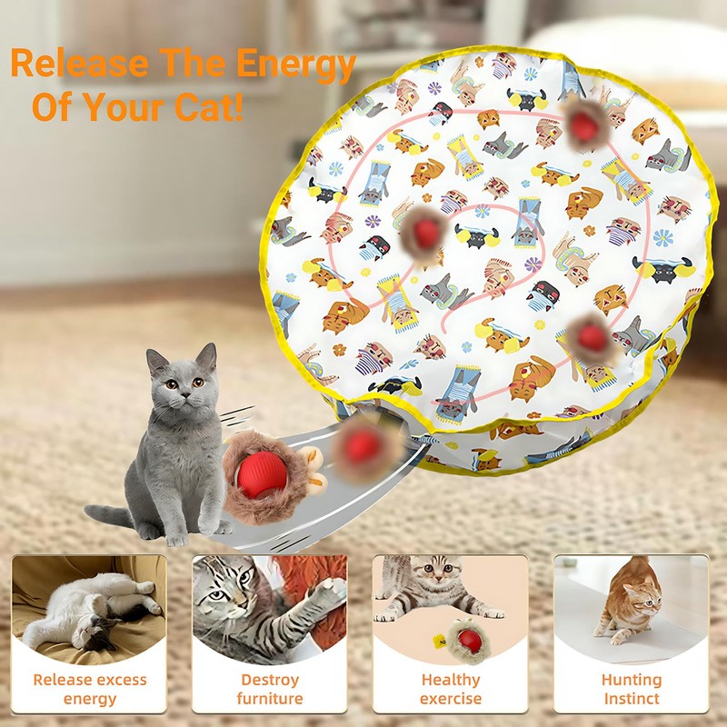 ELESULTRA Interactive Cat Toy Automatic - Fast Moving Ball Toys Hide and Seek in Play Mat Smart Cat Games for Bored Indoor Adult Cats Dog Rolling Electric Enrichmenttoy Gifts for Dogs Cat Birthday