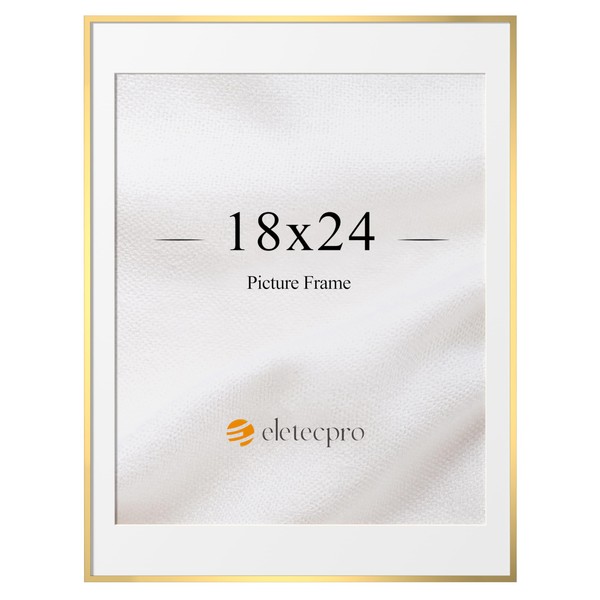 eletecpro 18x24 Picture Frame, Aluminum Metal Photo Frame Display Pictures 16x20 Photo with Mat or 18x24 without Mat, Wall Hanging Poster Frame, Gold