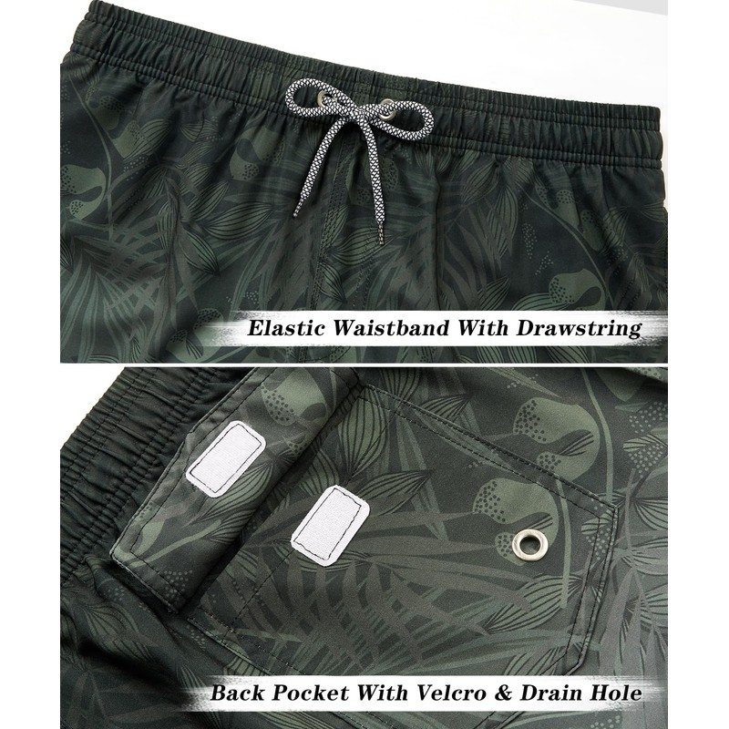 - Mesh Liner and Pockets -- The beach shorts with mesh liner have 2 slanted hand pockets and 1 back pocket with velcro and drain hole, effective storage wallet, key or other small items.