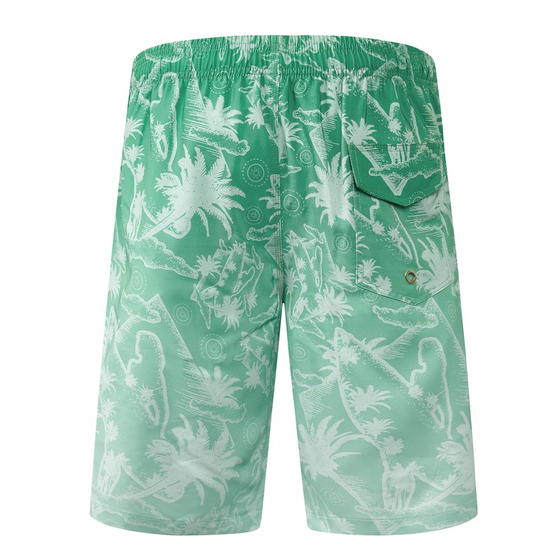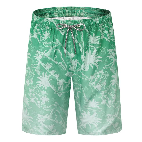 ELETOP Men's Swim Shorts Quick Dry Swim Trunks Beach Bathing Suit Board Shorts with Mesh Lining Palm Gradient Green L