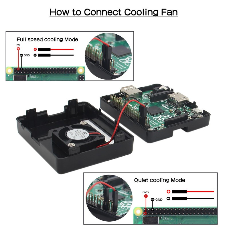 - Package Include: 1 x ABS Case-Black; 4 x Screws; 1x 4pcs Rubber Pads; 1 x 5V 3007 Cooling Fan