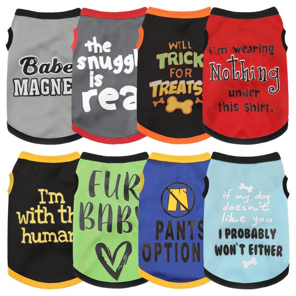 Elevate Your Pet's Seasonal Style with Playful Panache: 8-Piece Set of Dog Shirts Featuring Hilarious Printed Patterns, ensuring Airy Comfort for Summer and Timeless Fall Classics 8pc Medium