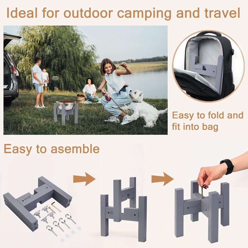 - 【Easy Assembly & Disassembly】Easy to assemble and disassemble,you can put the dog bowl holder in your bag,suitcase and car trunk,Ideal for outdoor camping and travel.