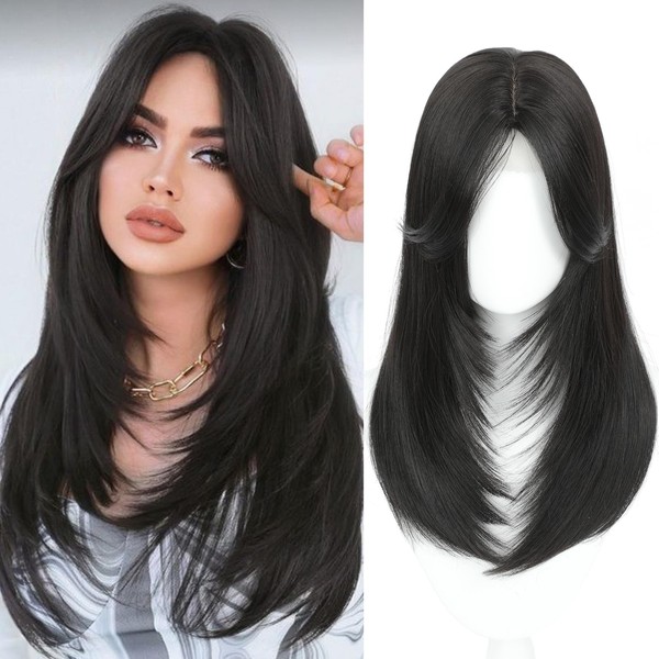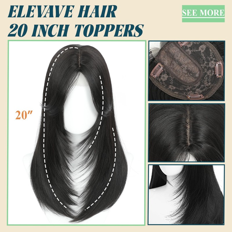 ELEVAVE Hair Toppers for Women with Thinning Hair, 20 Inch Toppers Hairpieces for Women with Middle Part Clip in Bangs 360° 3D Realistic Scalp Daily Use (Black)