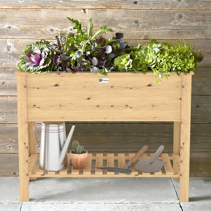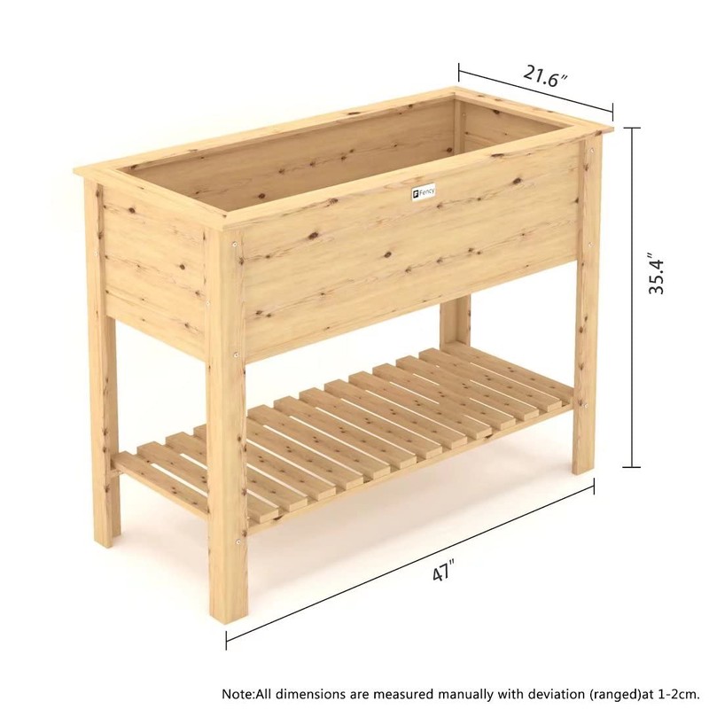 Elevens Raised Garden Bed Outdoor, Standing Wood Raised Garden Boxes for Vegetables, Flowers and Herbs, Elevated Planter Box with Legs and Large Storage Shelf 47 * 21.6 * 35.4", Capacity 220lb