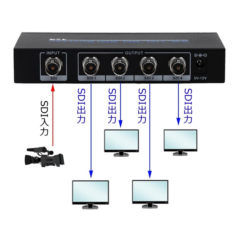 - It can distribute SDI signals from one SDI device to up to 4 monitors or other SDI devices. Supported video formats: SD-SDI (270MB/s), HD-SDI(1.485Gb/ s), 3G-SDI(2.97Gb/ s)