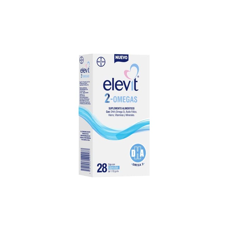 Elevit 2 Omegas, Suplemento Alimenticio con Omega 3, cido Flico, Hierro, Vitaminas e Minerales, Multivitamnico para Mujer, 28 Cpsulas
