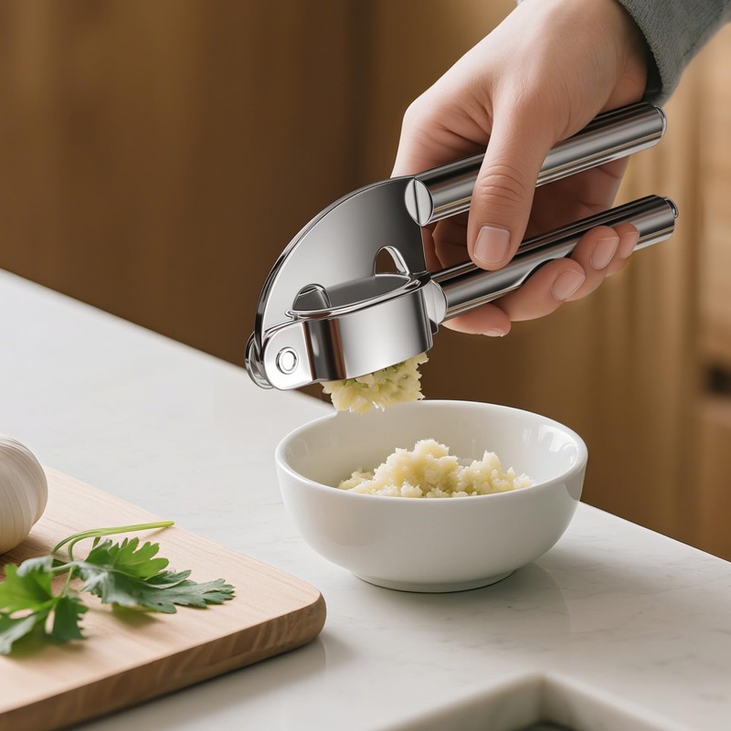 ELEVO Prensa de Ajo, Exprimidor de Ajos Profesional, Triturador de Ajo o Jengibre, Mango Ergonómico Fácil de Apretar