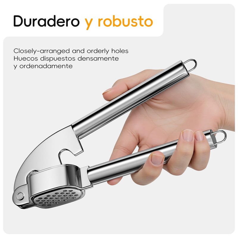 - ⚙️ Tecnología de 37 Dientes para Máxima Extracción: El exprimidor de ajos profesional incluye una cámara con 37 picos de acero inoxidable que rompen fibras y liberan hasta un 40% más de jugo* (*vs. modelos estándar). Ideal para cocineros que buscan intensificar sabores en platos mexicanos como moles o salsas.