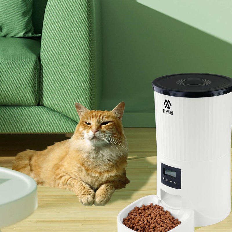 Elevon 4L Automatic Cat Feeder – Programmable Dog & Pet Food Dispenser with 10s Voice Recorder, Portion Control, Desiccant Bag, Large Capacity for Small Large Pets, White